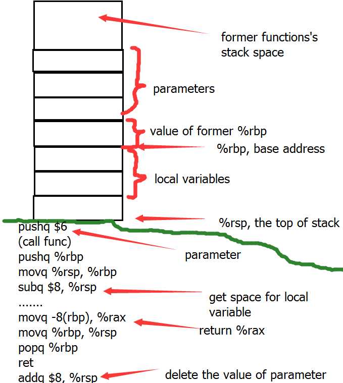 1, %rsp ----- top of the stack