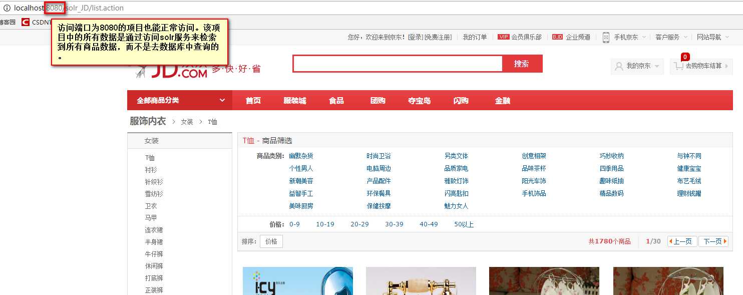 需求:使用Solr实现电商网站中商品信息搜索功能,可以根据关键字搜索商品信息,根据商品分类、价格过滤搜索结果,也可以根据价格进行排序,实现分页。