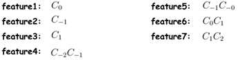 设计字特征的关键是包含足够的上下文关系。黄昌宁等人在《中文分词十年回顾》中提到,在[3]中所有语料库99%以上的词都是5字或5字以下的词。因此,使用宽度为5个字的上下文窗口足以覆盖真实文本中绝大多数的构词情形。进一步,该文提到了一个确定有效词位标注集的定量标准——平均加权词长。其定义为: