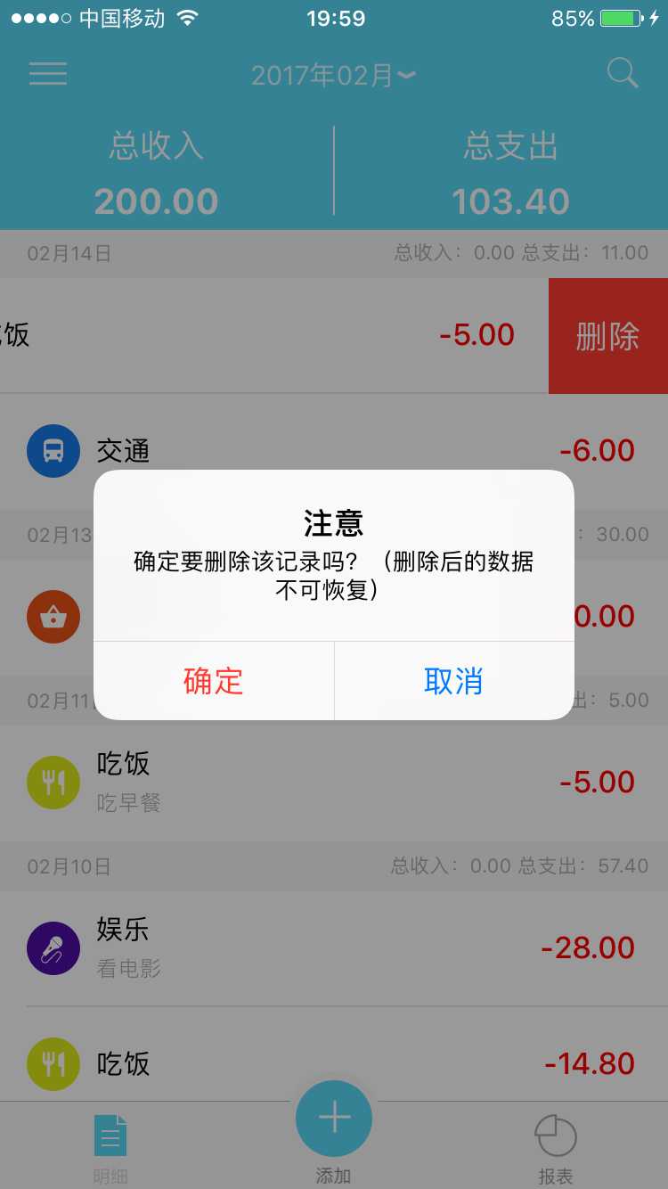左滑账目可删除