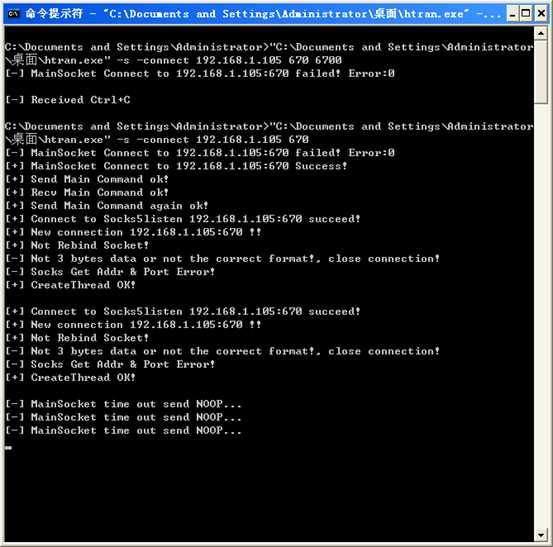 \桌面\htran.exe" -s -connect 192.168.1.105 670