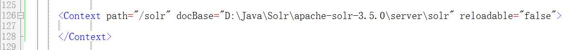 七、(第五、六步不可用的话)设置tomcat的context,在tomcat/conf/catalina/localhost下新建solr.xml,如果tomcat的conf文件夹下没有/catalina/localhost,可以自己创建,内容如下。