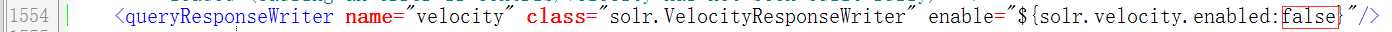 启动如果报错,取消VelocityResponseWriter输出格式,可将solrconfig.xml中queryResponseWriter末尾改为false