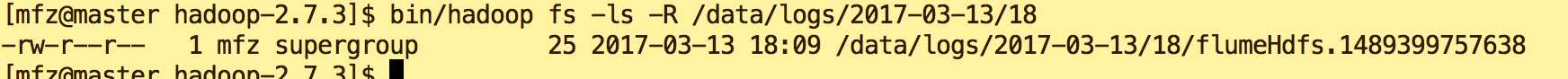 bin/hadoop fs -cat /data/logs/2017-03-13/18/flumeHdfs.1489399757638