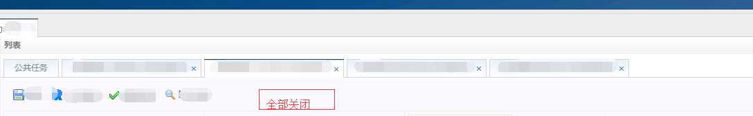 在其中一个子页面中点击按钮“全部关闭”,关闭所有的tab页,只保留一个tab页