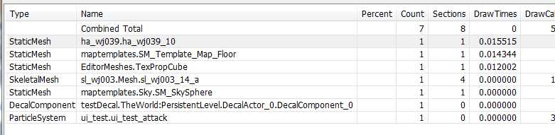 void WxPrimitiveStatsBrowser::UpdatePercentList(UBOOL bResizeColumns/*=TRUE*/){BeginUpdate();ListControl->Freeze();{INT nCount = ListControl->GetItemCount();//Get the aggregate countwxListItem ItemData;ItemData.SetId(0);// 行ItemData.SetColumn(WxPrimitiveStatsBrowser::PrimarySortIndex);ItemData.SetMask(wxLIST_MASK_TEXT);ListControl->GetItem(ItemData);//Get the valueFString TotalValue = ItemData.GetText();// Strip offINT NameStartIndex = TotalValue.InStr(TEXT(","));while(NameStartIndex != INDEX_NONE){TotalValue = TotalValue.Left(NameStartIndex)+ TotalValue.RightChop(NameStartIndex+1);NameStartIndex = TotalValue.InStr(TEXT(","));}INT nTotalValue = appAtoi(*TotalValue);for( INT RowIndex=0; RowIndex<nCount; RowIndex++ ){//Get the aggregate countwxListItem ItemData;ItemData.SetId(RowIndex);// 行ItemData.SetColumn(WxPrimitiveStatsBrowser::PrimarySortIndex);ItemData.SetMask(wxLIST_MASK_TEXT);ListControl->GetItem(ItemData);//Get the value//Get the valueFString ItemValue = ItemData.GetText();// Strip offINT NameStartIndex = ItemValue.InStr(TEXT(","));while(NameStartIndex != INDEX_NONE){ItemValue = ItemValue.Left(NameStartIndex) + ItemValue.RightChop(NameStartIndex+1);NameStartIndex = ItemValue.InStr(TEXT(","));}INT nValue = appAtoi(*ItemValue);FLOAT Percent = (FLOAT)nValue / (FLOAT)nTotalValue;ListControl->SetItem( RowIndex, PCSBC_Percent, *FString::Printf(TEXT("%.3f%%"),Percent* 100.f) ); // Percent}// Set proper column width.if(bResizeColumns == TRUE){SetAutoColumnWidth();}}ListControl->Thaw();EndUpdate();}