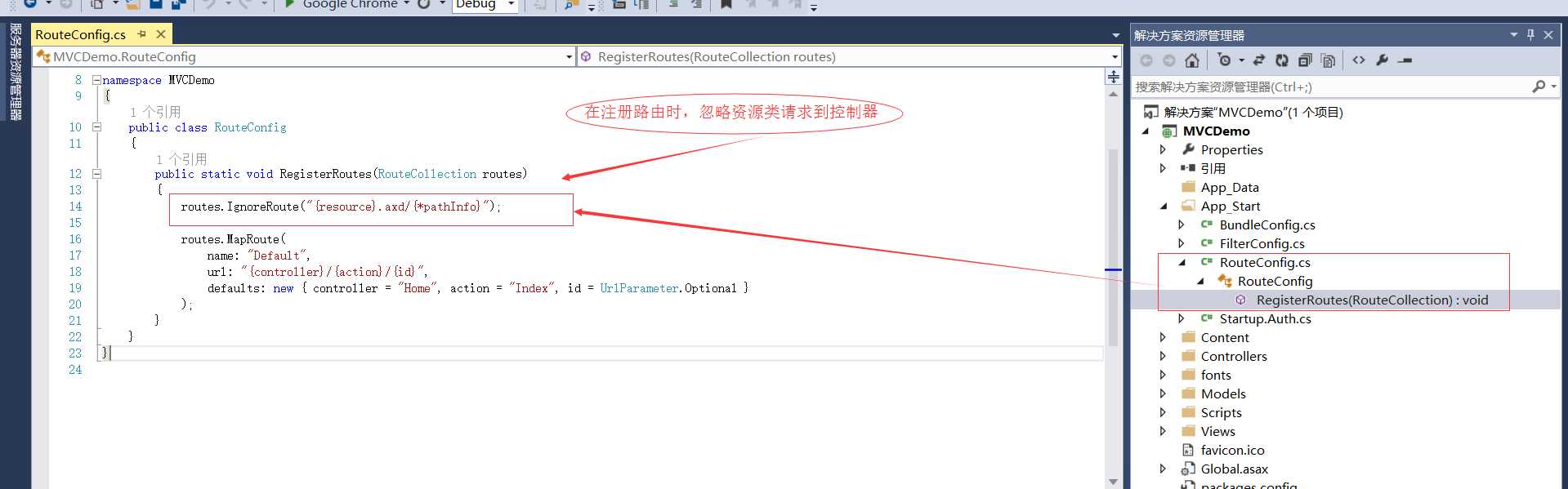 16 routes.IgnoreRoute("{resource}.axd/{*pathInfo}");//忽略资源文件