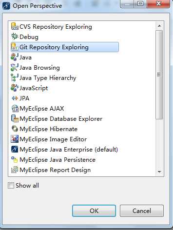 1、进入MyEclipse,点击File-->Import,选择Git,点击“Next”,如下图:
