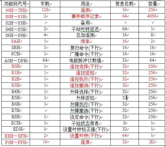 遥测功能码: 00H ~ 07H 遥信功能码: F0H ~ FFH
