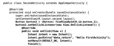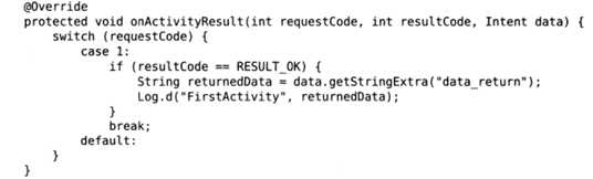 3)我们在本活动中会写一个方法(onActivityResult())来处理返回的数据