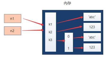 假设字典n1 = {"k1": "abc", "k2": 123, "k3": ["abc", 123]}