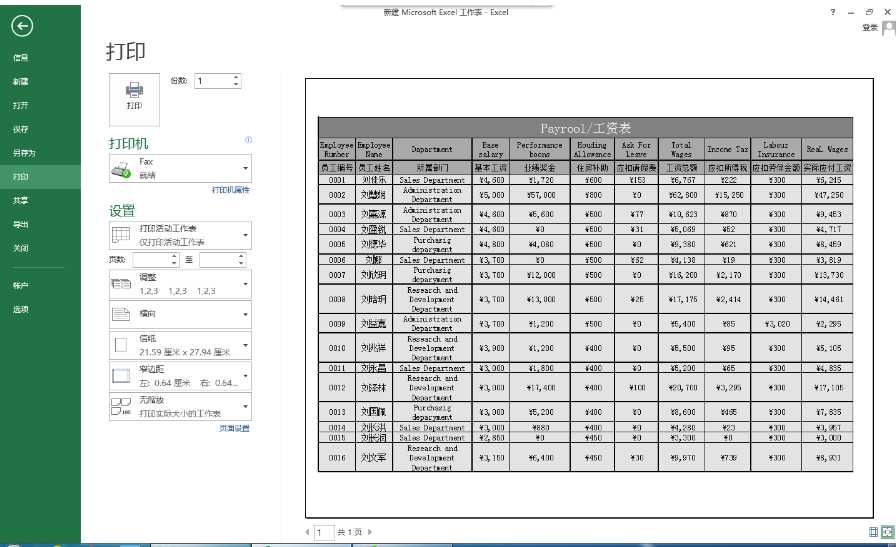 计算机作业(八) 工资表