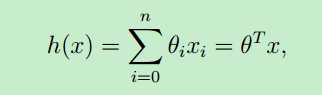 上面假设函数是从0到n求和,也就是说:对于每个输入样本x,将它看成一个向量,每个x中有n+1个 features。比如预测房价,那输入的样本 x(房子的大小,房子所在的城市,卫生间个数,阳台个数.....一系列的特征)