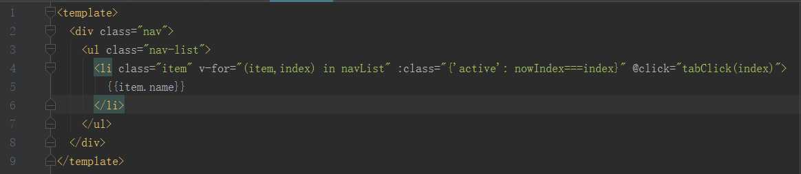 6.前期工作已经完成,由于我们是在两个组件间进行交互,所以点击导航按钮时需要将当前导航按钮的index传给swiper组件,然后利用swiper插件的slideTo方法跳转到相应的内容区,所以在nav组件的tabClick方法中加入发射事件,如下图所示: