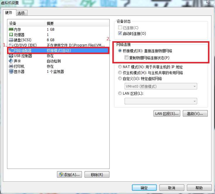 重新配置网卡,将VMware Network Adapter VMnet1虚拟网卡作为虚拟机的路由。