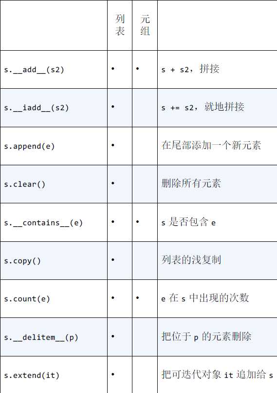 除了增减元素相关的方法之外,元组支持列表的其他所有方法。