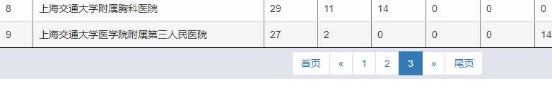 /** * 如果当前页为第一页或最后一页时将相应的 首页 ? 尾页 ? 去除 * @param ulLiTotal * @returns */ function removeLi(ulLiTotal){ if(ulLiTotal <= 1){ $(".pagination").each(function () { $(this).find(‘li‘).each(function() { var text = $(this).children("a").text(); if(text == "首页" || text == "?" || text == "尾页" || text == "?"){ $(this).remove(); } }); }); }else{ var pageNow = parseInt($(".pagination li.active").text()); if(pageNow == 1){ $(".pagination").each(function () { $(this).find(‘li‘).each(function() { var text = $(this).children("a").text(); if(text == "首页" || text == "?"){ $(this).remove(); } }); }); } if(pageNow == ulLiTotal){ $(".pagination").each(function () { $(this).find(‘li‘).each(function() { var text = $(this).children("a").text(); if(text == "尾页" || text == "?"){ $(this).remove(); } }); }); } } } /** * 分页 * * 每一个ul标签里展现ulLiNum个li(目前规定为3,程序中不算首页尾页和《 》的li) * 每一个li里面是pageSize(每页3条)条数据 * liTotal是total/pageSize后获取的总li数,向下取整 * 每一个ul里面又装pageSize个li * * @param str str代表传给后台的where条件 * @param liNow liNow代表当前是第几个li * @param pageNow 当前是第几页 * @param total 总数据量 * @param pageSize 每页的数据量 * @returns */ function getli(str,total,pageSize){ var ulLiNum = 3; var liTotal = Math.ceil(total/pageSize); var code = ‘<ul class="pagination" style="margin:0 auto;">‘; if(total == 0){ //数据总数为0直接退出 return; }else{ //初始化状态 code += ‘<li><a href="javascript:void(0)">首页</a></li>‘; code += ‘<li><a href="javascript:void(0)">«</a></li>‘; if(liTotal<=ulLiNum){ code += compareCode(1,liTotal,1); code += ‘<li><a href="javascript:void(0)">»</a></li>‘; code += ‘<li><a href="javascript:void(0)">尾页</a></li>‘; }else{ code += compareCode(1,ulLiNum,1); code += ‘<li><a href="javascript:void(0)">»</a></li>‘; code += ‘<li><a href="javascript:void(0)">尾页</a></li>‘; } } code += ‘</ul>‘; var my = document.getElementById(‘myli‘); my.innerHTML = code; removeLi(liTotal); //去除多余的li //由于是动态新增的li节点(拼出来的),所以第一次要初始化事件,不然不响应点击事件 (为新增的li添加响应事件) onClickLi(str,total,pageSize,ulLiNum); } /** * 最后一个ul向前时重建,或导数第二个ul向后时重建 ,pageNow>1&&pageNow<li的总数时重建 * @param begin * @param end * @param active * @returns */ function rebulid(begin,end,active){ var my = document.getElementById(‘myli‘); var code = ‘<ul class="pagination" style="margin:0 auto;">‘; code += ‘<li><a href="javascript:void(0)">首页</a></li>‘; code += ‘<li><a href="javascript:void(0)">«</a></li>‘; code += compareCode(begin,end,active); code += ‘<li><a href="javascript:void(0)">»</a></li>‘; code += ‘<li><a href="javascript:void(0)">尾页</a></li>‘; code += ‘</ul>‘; my.innerHTML = code; } /** * * 当初始化或点击上、下、尾页时将active位置的li设置为active(背景显蓝) * * @param begin 开始位置 * @param end 截至位置 * @param active 高亮位置,颜色为蓝 * @returns */ function compareCode(begin,end,active){ var code = ‘‘; for (var i = begin;i <= end ;i++) { if(i != active){ code += ‘<li><a href="javascript:void(0)">‘+i+‘</a></li>‘; }else{ code += ‘<li class="active"><a href="javascript:void(0)">‘+i+‘</a></li>‘; } } return code; } /** * 将第i个位置的元素设置为active * @param i * @returns */ function active(i){ $(".pagination").each(function () { var temp; $(this).find(‘li‘).each(function() { temp = parseInt($(this).text()); if(temp == i){ $(this).addClass("active").siblings().removeClass("active"); } }); }); } /** * 不是最后一个ul时,由x个ul至y个ul时只需要给每个li加或减ulLiNum * @param flag * @returns */ function addOrminus(flag){ var temp; $(".pagination").each(function () { $(this).find(‘li‘).each(function() { temp = $(this).children("a").text(); if(temp != "?" && temp != "?" && temp != "首页" && temp != "尾页"){ $(this).children("a").text(parseInt($(this).text()) + flag); } }); }); } /** * li的点击事件 * @param str * @param total * @param pageSize * @param ulLiNum * @returns */ function onClickLi(str,total,pageSize,ulLiNum){ var j = Math.ceil(total/pageSize);//总li数 var k = Math.ceil(j/ulLiNum);//总ul数 $(".pagination li").click(function(){ var text = $(this).text(); var pageNow = parseInt($(".pagination li.active").text()); var i = pageNow % ulLiNum;//当前页是否是ulLiNum的整数倍 var l = Math.ceil(pageNow/ulLiNum);//当前是第几个ul if(text == "?"){ if(pageNow != 1){ if(i == 1){ //已到达某一ul中第一个li if(k - l == 0){//重新拼 //动态新增的li的click无响应,所以重建后初始化click事件 rebulid((k-2)*ulLiNum+1,(k-1)*ulLiNum,(k-1)*ulLiNum); onClickLi(str,total,pageSize,ulLiNum); }else{ addOrminus(-ulLiNum); } } active(pageNow-1); }else{ return; } }else if(text == "?"){ if(pageNow != j){ if(i == 0){ //已到达某一ul中最后一个li if(l + 1 < k){ addOrminus(ulLiNum); }else{//已到达倒数第二个ul,重新拼 //动态新增的li的click无响应,所以重建后初始化click事件 rebulid((k-1)*ulLiNum+1,j,(k-1)*ulLiNum+1); onClickLi(str,total,pageSize,ulLiNum); } } active(pageNow+1); }else{ return; } }else if(text == "首页"){ getli(str,total,pageSize); }else if(text == "尾页"){ //动态新增的li的click无响应,所以重建后初始化click事件 rebulid((k-1)*ulLiNum+1,j,j); onClickLi(str,total,pageSize,ulLiNum); }else{ if(parseInt(text) == pageNow){ return; }else{ $(this).addClass("active").siblings().removeClass("active"); } } pageNow = parseInt($(".pagination li.active").text()); if(pageNow != 1 && pageNow != j){ var m = Math.ceil(pageNow/ulLiNum); rebulid((m-1)*ulLiNum+1,m*ulLiNum,pageNow); //动态新增的li的click无响应,所以重建后初