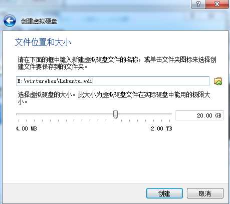 设置虚拟机镜像文件在真实环境下的位置以及大小,无特殊要求默认选项即可,设置完成,选择“创建”,这是本人的设置: