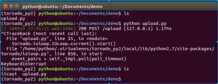 # coding:utf-8 import tornado.web import tornado.ioloop class IndexHandler(tornado.web.RequestHandler): """主路由处理类""" def post(self): # 我们修改了这里 """对应http的post请求方式""" self.write("Hello Itcast!") if __name__ == "__main__": app = tornado.web.Application([ (r"/", IndexHandler), ]) app.listen(8000) tornado.ioloop.IOLoop.current().start()