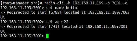 # redis-cli -h 192.168.11.199 -p 7001 -c