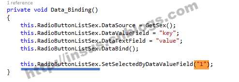 由于开发一开始时,就为RadioButtonList控件设置了两个值,0与1。因此我们可以对上面的代码稍改一下: