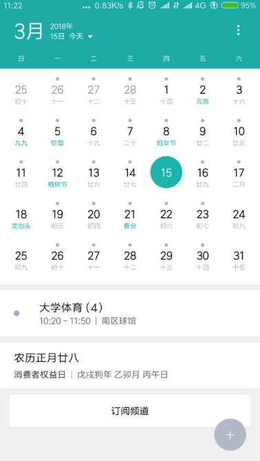 5. 等待一段时间,我们就能在手机的日历上看到课表了。