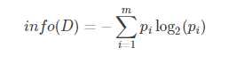 设D为用(输出)类别对训练元组进行的划分,则D的熵表示为: