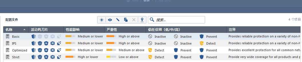 Step7:修改威胁防护配置文件IPS,并且勾选需要激活的相关参数,如下图: