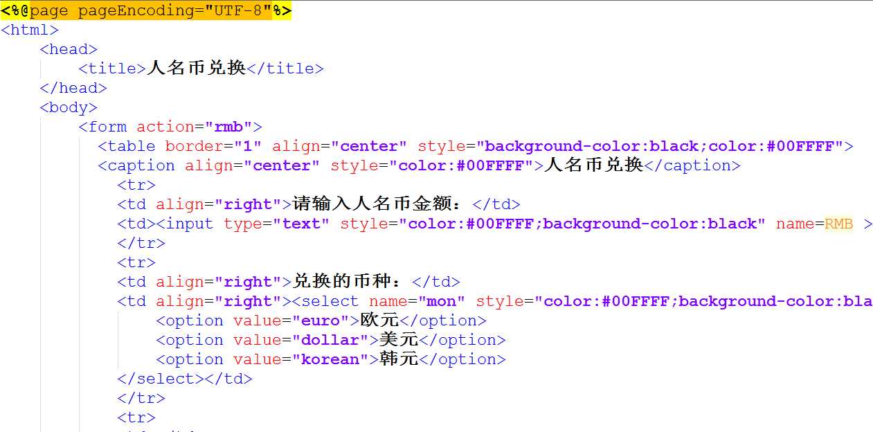 接口的实现现学现用(人名币兑换的实例)并显示到网页中