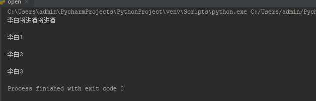 f = open(file="将进酒", mode=‘r‘, encoding=‘utf-8‘) data = f.read() print(data)