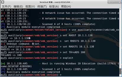 使用指令use auxiliary/scanner/smb/smb_version