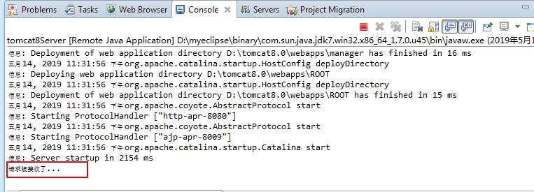 9.在浏览器输入 http://localhost:8080/Hello/hello.action 检测是否接收到请求