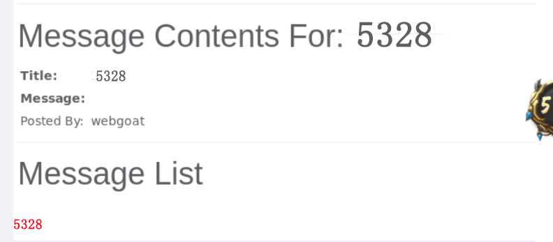 XSS-Cross Site Request Forgery(CSRF)Parameters中的src和menu值,我的分别为309和900Message框中输入<img src="http://localhost:8080/WebGoat/attack?Screen=309&menu=900&transferFunds=5000" width="1" height="1" />,以图片的的形式将URL放进Message框,这时的URL对其他用户是不可见的,用户一旦点击图片,就会触发一个CSRF事件,点击Submit提交(其中语句中的&transferFunds=5000,即转走的受害人的金额;宽高设置成1像素的目的是隐藏该图片)Message List中生成以Title命名的链接(消息)。点击该消息,当前页面就会下载这个消息并显示出来,转走用户的5000元,从而达到CSRF攻击的目的。