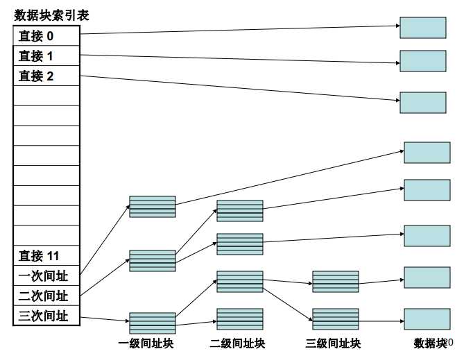 数据块索引节点表(数据块寻址)