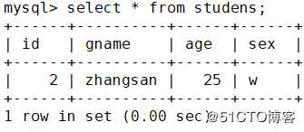 mysql> delete from studens where id=1;