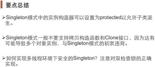 3.饿单例模式和懒单例模式构造方法都是私有的,因而是不能被继承的,有些单例模式可以被继承(如登记式模式)