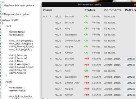 Scyterg工具本身就有两个功能,一是形式化安全分析下协议加密和认证存在的安全漏洞,二是通过逐步添加认证条件来改进协议安全属性。作者在实例介绍中就对Needham_schroeder 协议做了改进,今晚先写到这-----