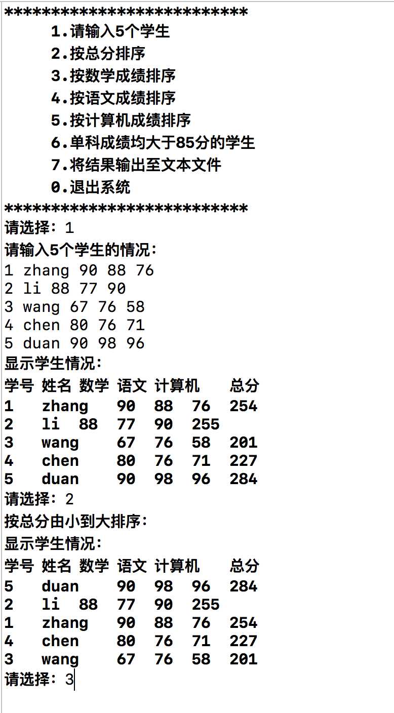cout<<"按计算机成绩从小到大排序"<<endl;