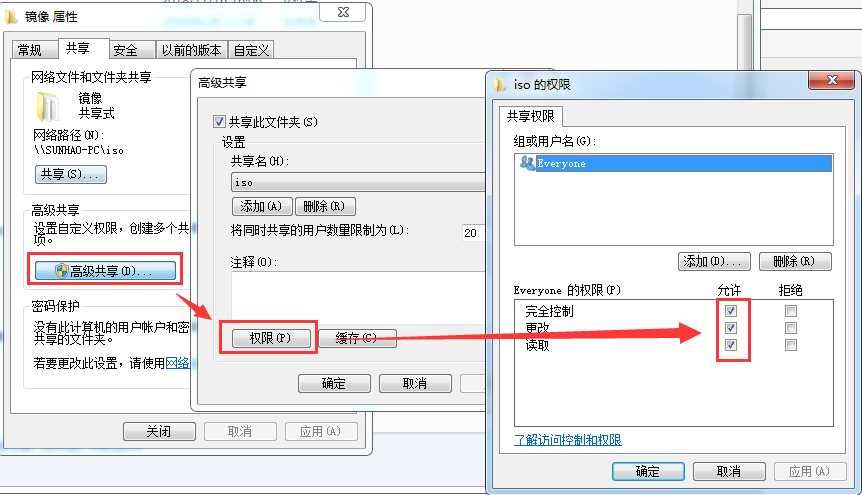 1.1 、windows预先设置,共享出一个文件夹,我将共享名改为了iso,方便Linux操作。