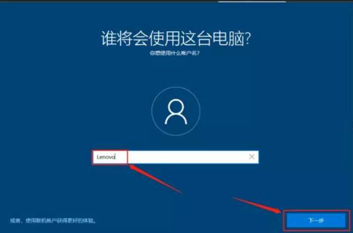 输入本地账户名并点击下一步。根据你自己喜好输一个名字