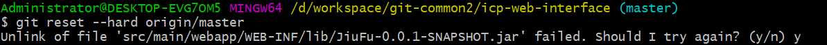 出现 Unlink of file ‘src/main/webapp/WEB-INF/lib/JiuFu-0.0.1-SNAPSHOT.jar‘ failed. Should I try again? (y/n) y