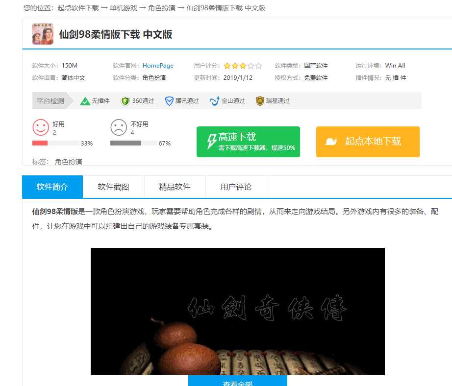 本文需要下载辅助《仙剑奇侠传》WIN95 版完美运行补丁
