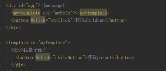 一般子组件中的$refs是空对象,因此需先给子组件自定义属性ref="myRefs",当需要找哪个子组件时,直接从$refs对象中找对应的名称即可