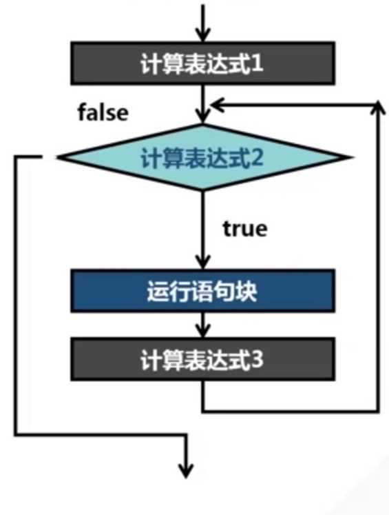 for(①初始化表达式;②条件表达式;③更新表达式){