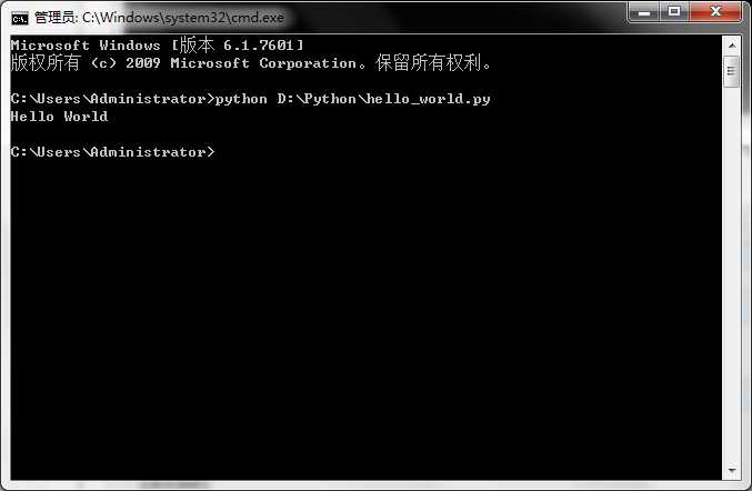 实际上python命令的语法比较简单,就是python <Python文件路径>,比如Python文件在D:\Python文件夹下,那文件路径就是D:\Python\hello_world.py,这样我们就不需要进入该文件夹也可以执行这个程序,如下图所示