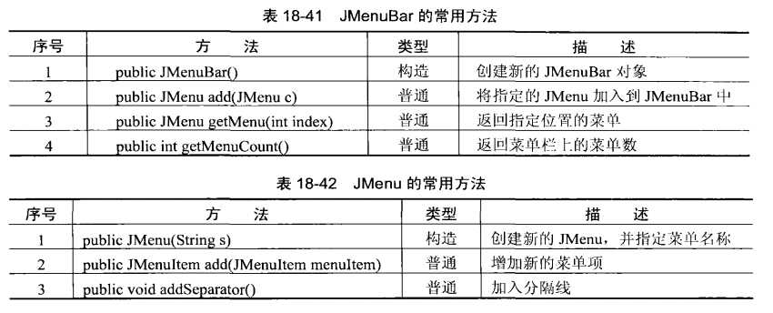 JMenuBar组件的功能是用来摆放JMenu组件,然后把JMenuBar组件加入至窗口中