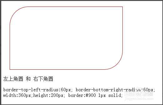 也可以通过控制border-radius的属性,将左上角为弧形和右下角为弧形,主要为border-top-left-radius 和border-bottom-right-radius.
