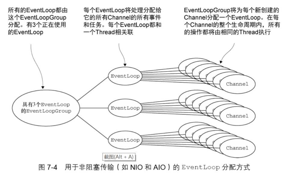 用于非阻塞传输(NIO和AIO)的EventLoop的分配方式