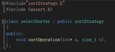 selectSorter,shellSorter,bubbleSorter三个类继承了sortStrategy类并重定义了纯虚函数sortOperation,三个类都有这一函数但实现各不相同。