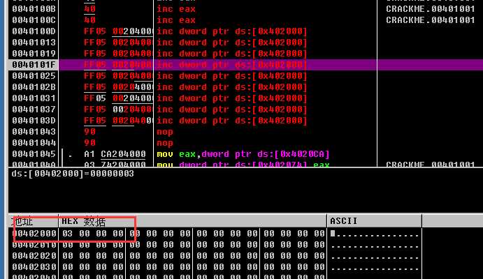 1、修改多个连续地址的汇编指令为inc eax,0x1